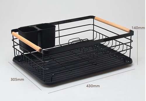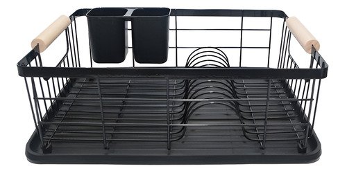 Secaplatos Ms Acero Pintado Negro Con Cubiertero Para Mesa 12 Platos