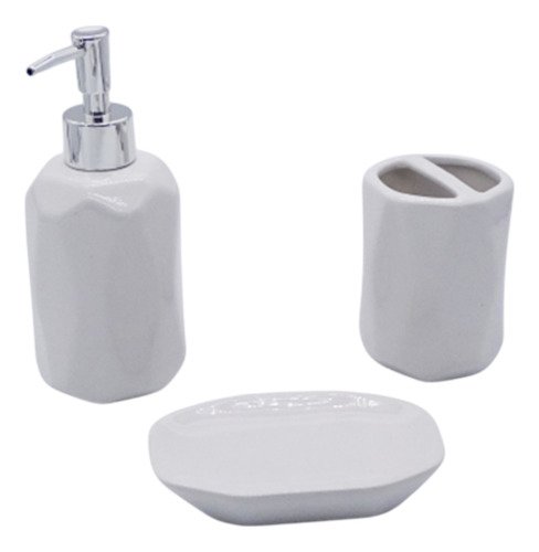 Set De Baño Porcelana 3 Piezas Dispenser Jabonera Vaso
