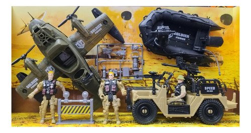 Juguete Set 2 Soldado Guerra Lancha Tanque Avion Helicoptero