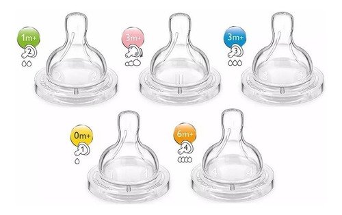 La mamadera Classic Philips Avent ofrece diferentes rangos de flujo para acompañar el crecimiento de su bebé. Recuerde que las indicaciones de edad son aproximadas, ya que los bebés crecen a diferentes ritmos. Todas las tetinas están disponibles en paquetes dobles.