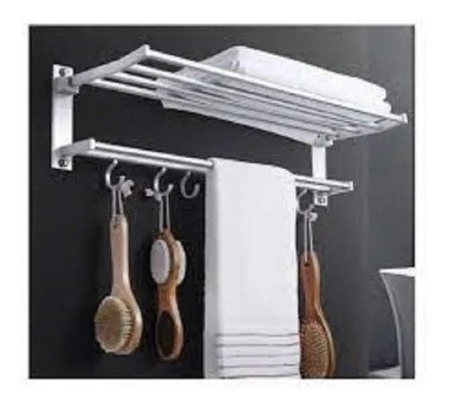 Toallero Repisa Barral Organizador de baño c/ganchos en fino acero inoxidable con ganchos y estante plegable.