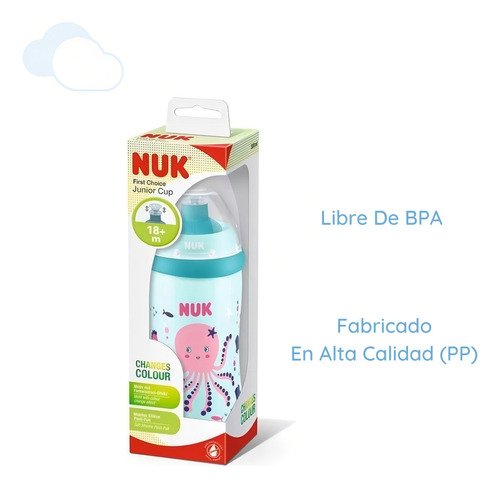 Vaso Antiderrame Junior Cup Cambio Color Nuk Color Azul Pez