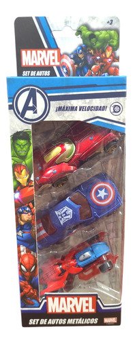 Juguete Cochecito Autito Metal X3 Spiderman Hulk Ironman Personaje Marvel