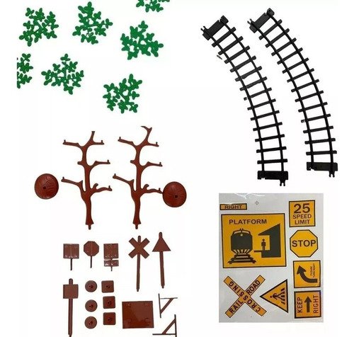 – 8 TRAMOS CURVOS DE 29CM C/U LARGO DEL TREN ARMADO CON EL VAGON 43CM APROXIMADAMENTE.